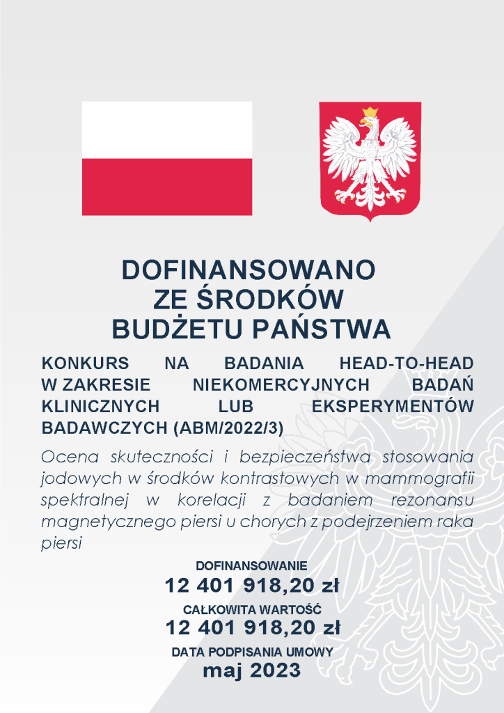 Ocena skuteczności i bezpieczeństwa stosowania jodowych środków kontrastowych w mammografii spektralnej w korelacji z badaniem rezonansu magnetycznego piersi u chorych z podejrzeniem raka piersi